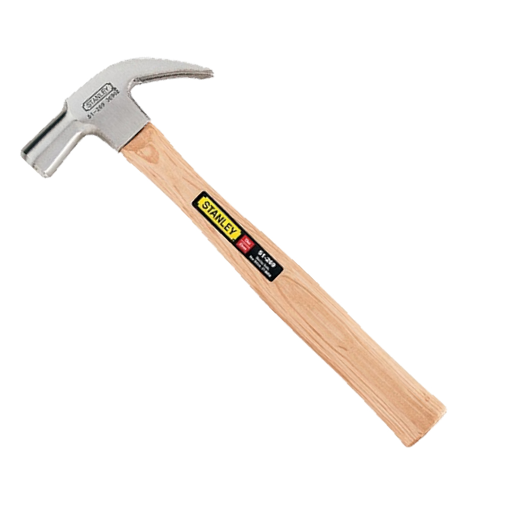 Martillo con cabeza de acero fija a 2 cuñas para más resistencia, mango de madera barnizado y uñas 15% más largas para sacar clavos fácilmente.
